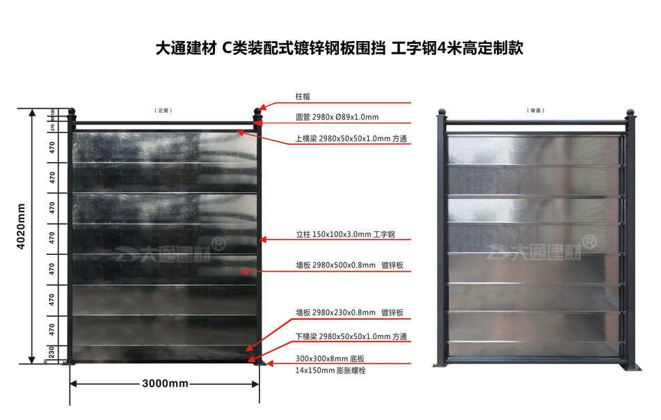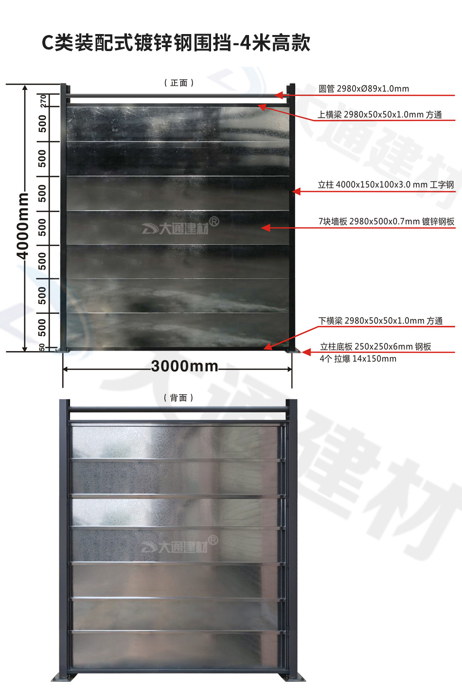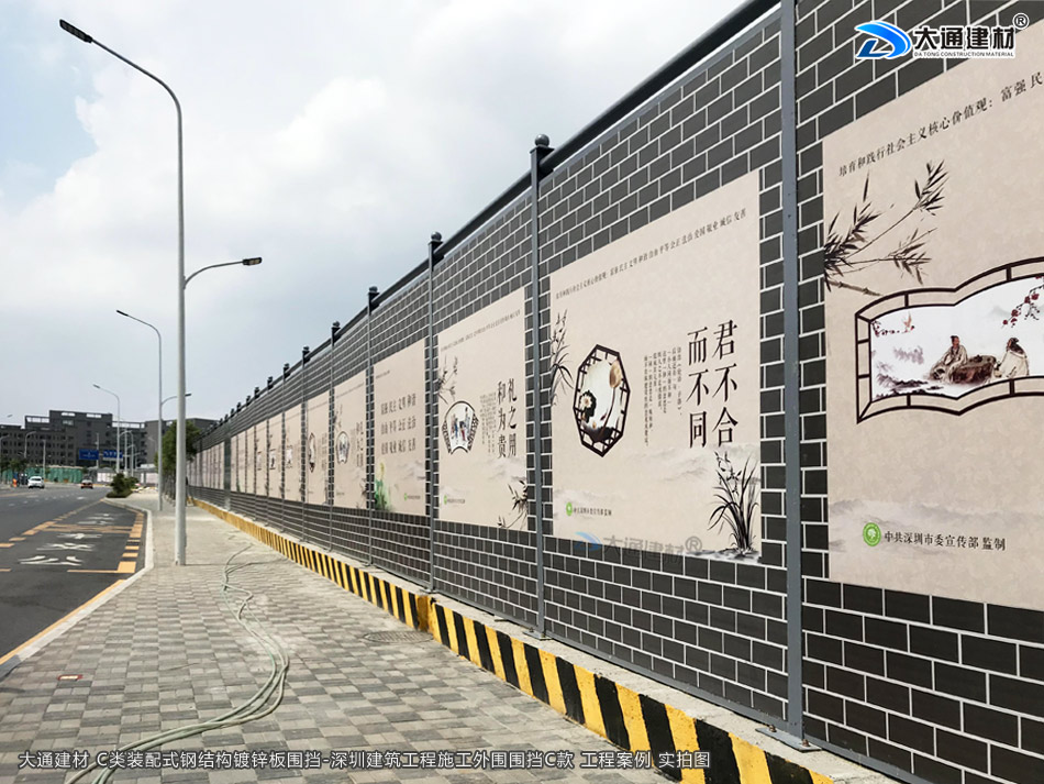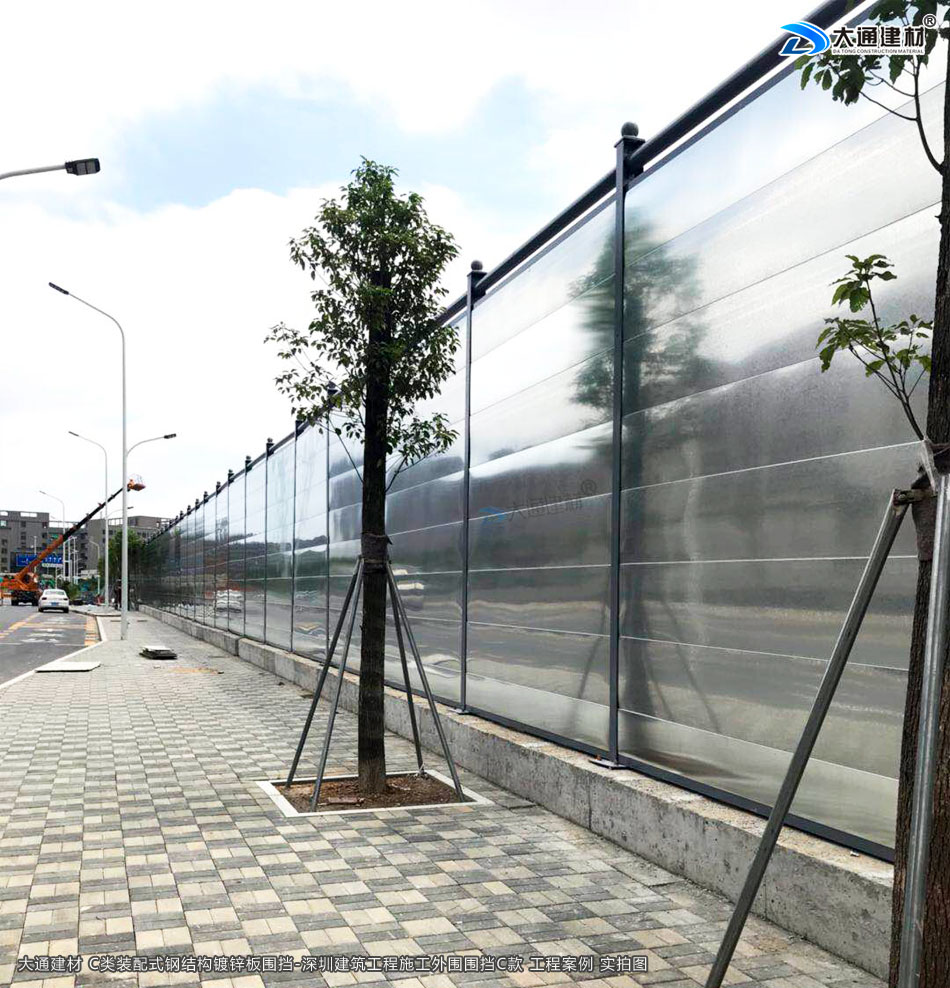 深圳市大通建材生产的C类装配式镀锌钢结构围挡4米高定制款,把深圳市龙华区建筑工程施工现场围起来,为施工安全保驾护航。