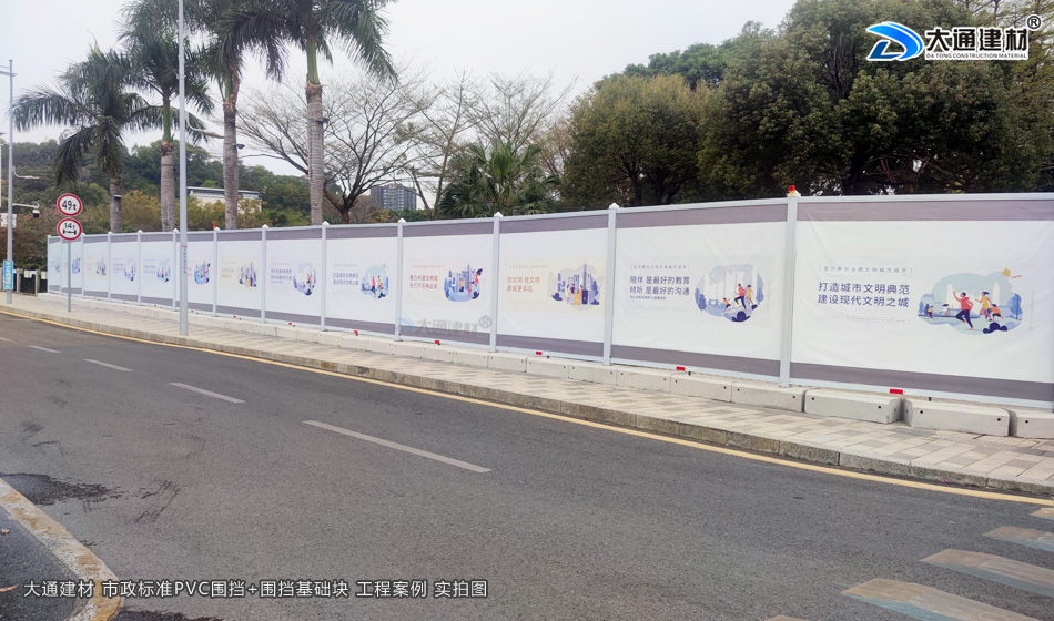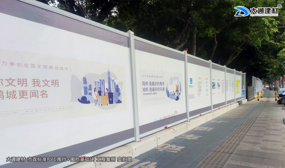 市政道路施工中,围挡是保障施工安全、维护交通秩序、减少扬尘污染的核心设施。传统围挡存在易锈蚀、抗风性差、环保性不足等问题,而市政标准PVC围挡凭借耐候防腐、安装便捷、可循环利用等优势,完全契合现代市政工程“安全、环保、高效”的建设要求。深圳大通建材提供市政标准PVC道路施工围挡的生产、定制、选型、安装、运维全流程,提升施工区域安全防护等级与城市道路整体形象。